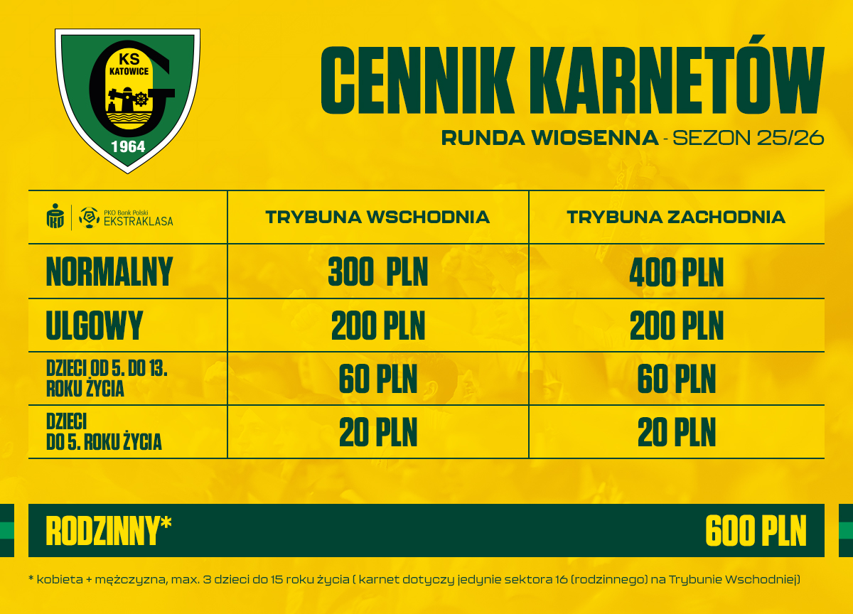Aby zapewnić sobie miejsce na Arenie Katowice, najlepiej dołączyć do grona karnetowiczów. Sprzedaż karnetów na rundę wiosenną prowadzona jest na Trybunę Wschodnią i Trybunę Zachodnią (wszystkie miejsca na „Blaszok” są wykupione na cały sezon).