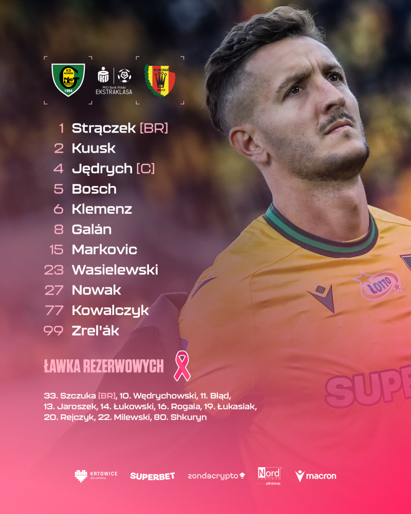 GKS Katowice: Strączek - Wasielewski, Kuusk, Jędrych, Klemenz, Galán, Markovic (46. Wędrychowski), Kowalczyk, Bosch (67. Milewski), Nowak, Zrel'ák (67. Shkuryn). Trener: Rafał Górak